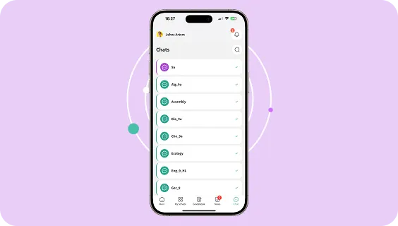 Comunique-se com alunos, pais e colegas — em chats para grupos de estudo, turmas ou individualmente.