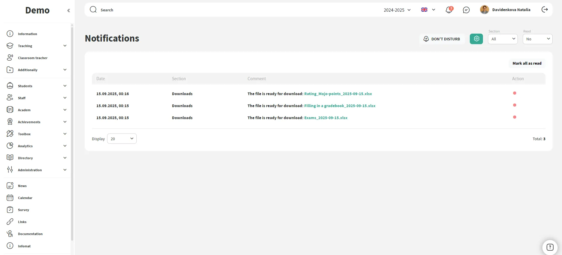Durante as aulas, é possível ativar um modo que desativa temporariamente as notificações do chat. Nada distrai da lição.