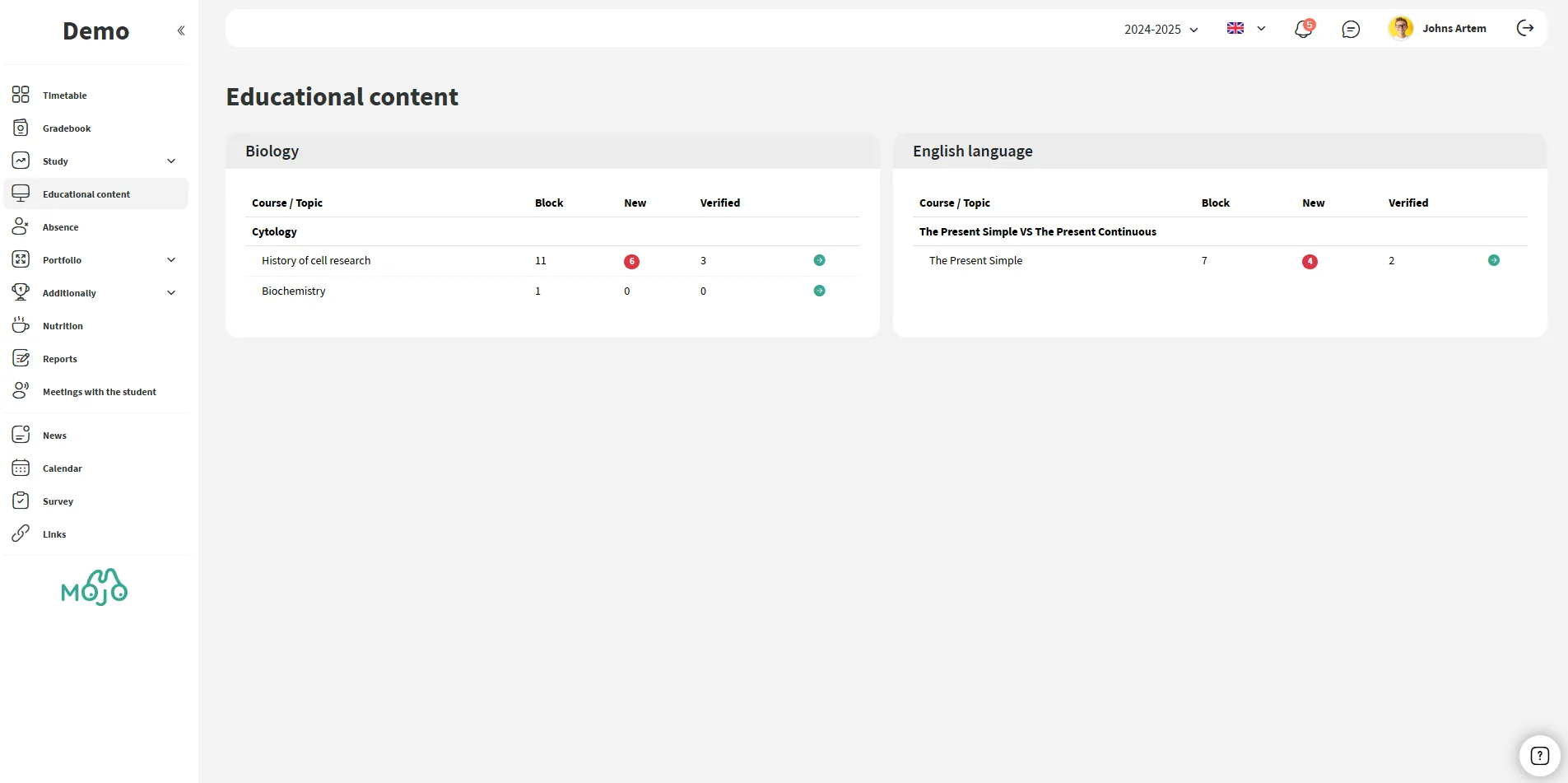 Preenche os blocos com conteúdo: tarefas, arquivos, testes, ditados