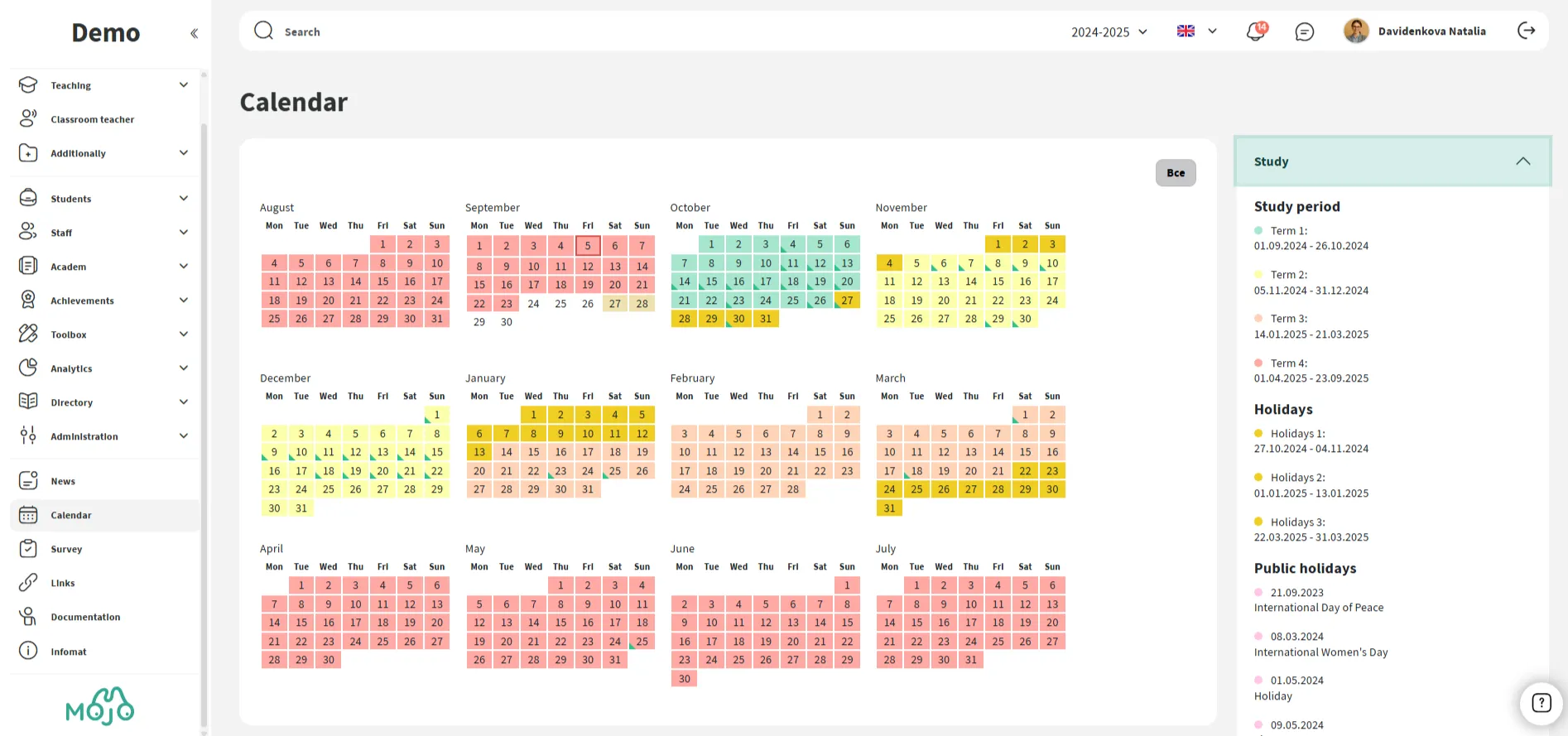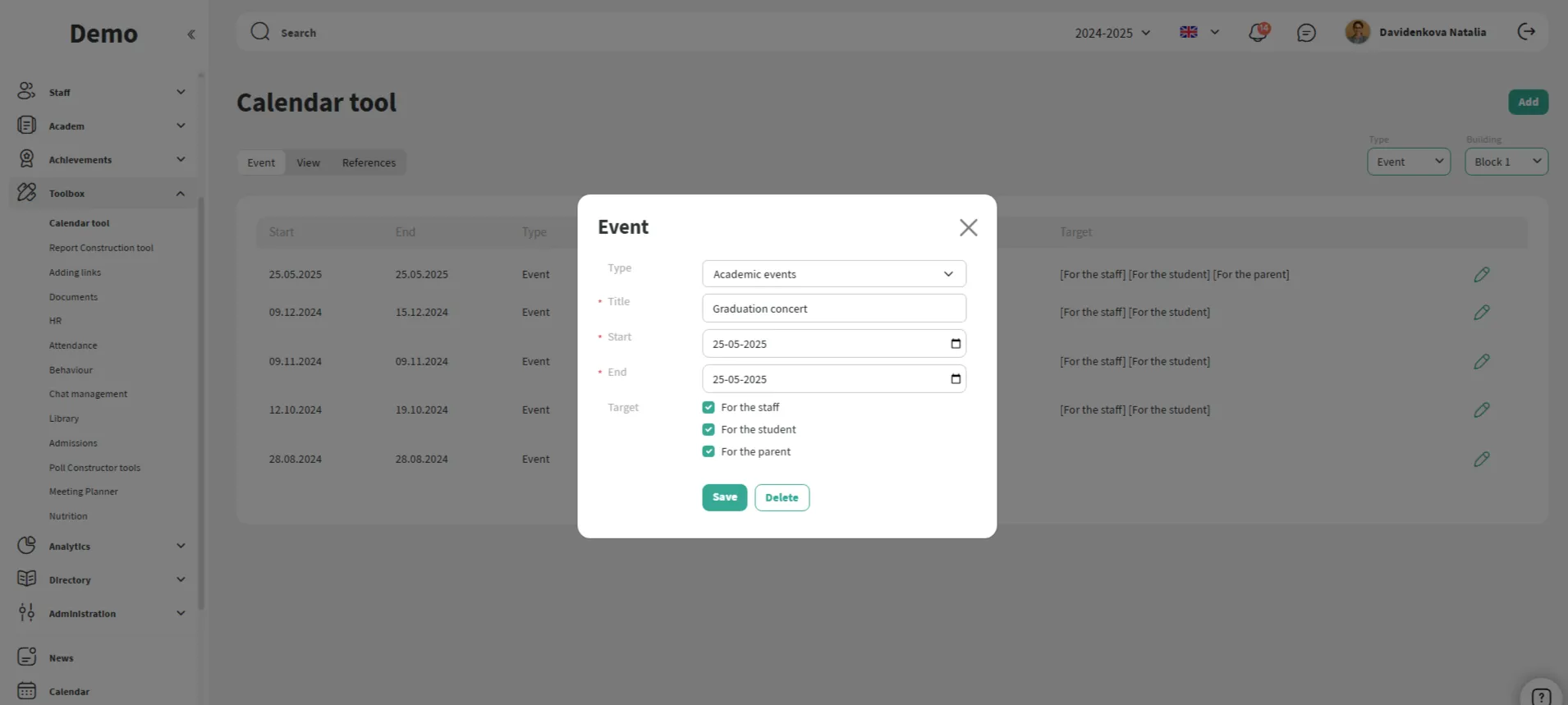 A escola cria eventos de várias categorias — desde reuniões de pais até festivais esportivos.