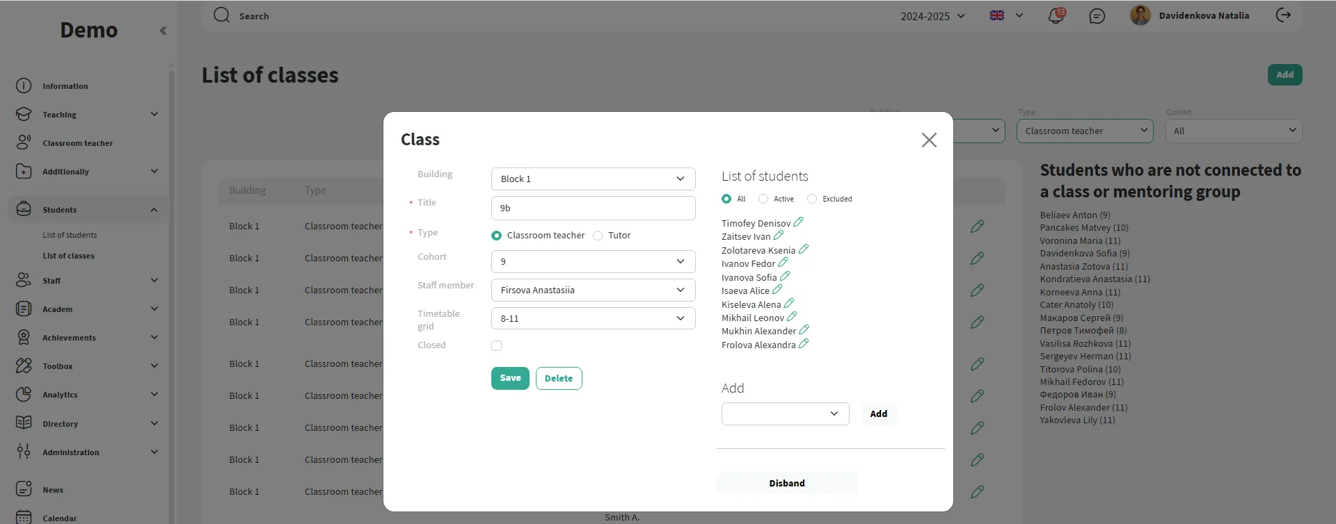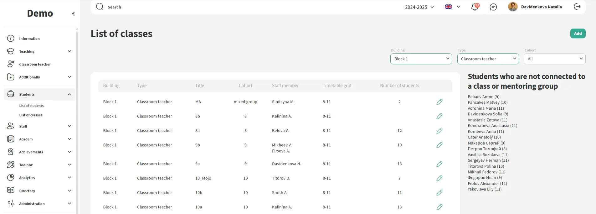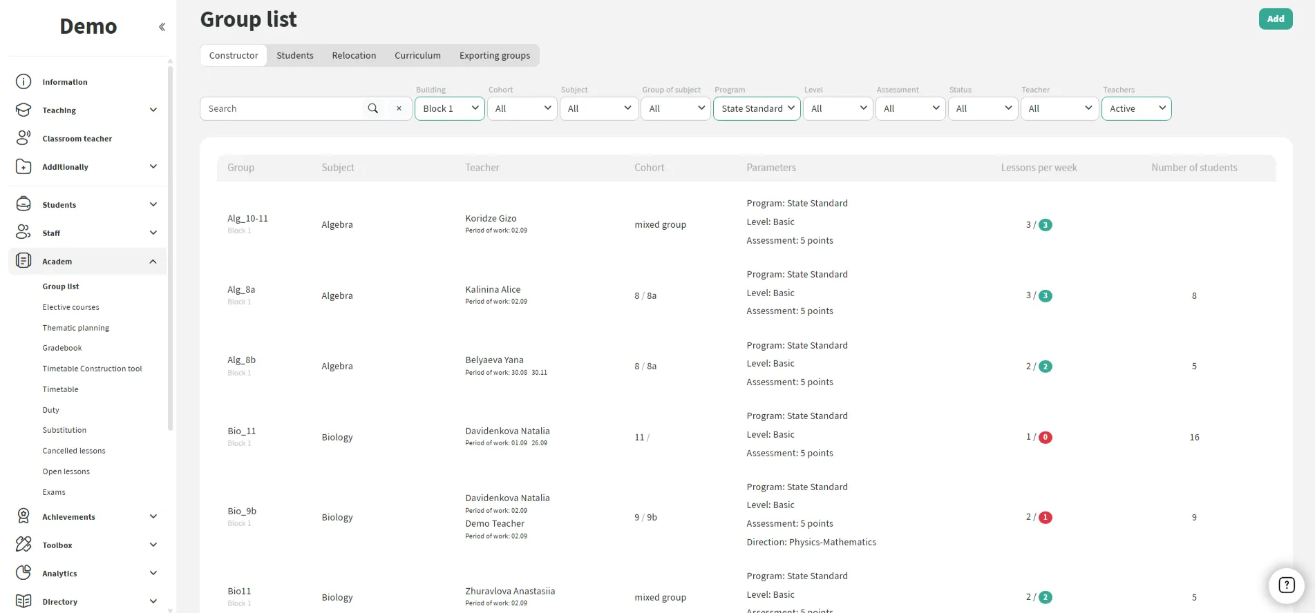 Combine alunos de uma ou várias turmas para aulas básicas, especializadas ou adicionais. Vários professores podem atuar em um mesmo grupo.