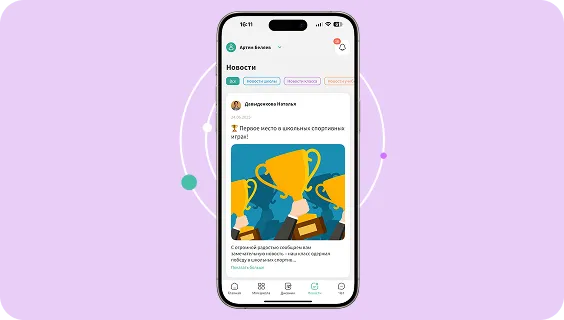 As notícias aparecem não apenas na versão web, mas também no aplicativo móvel. Pais, alunos e professores ficam sempre atualizados.