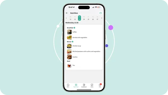 O cardápio e o status das refeições estão disponíveis tanto na versão web quanto na versão móvel. Os pais podem ver o que e quando seu filho comeu.