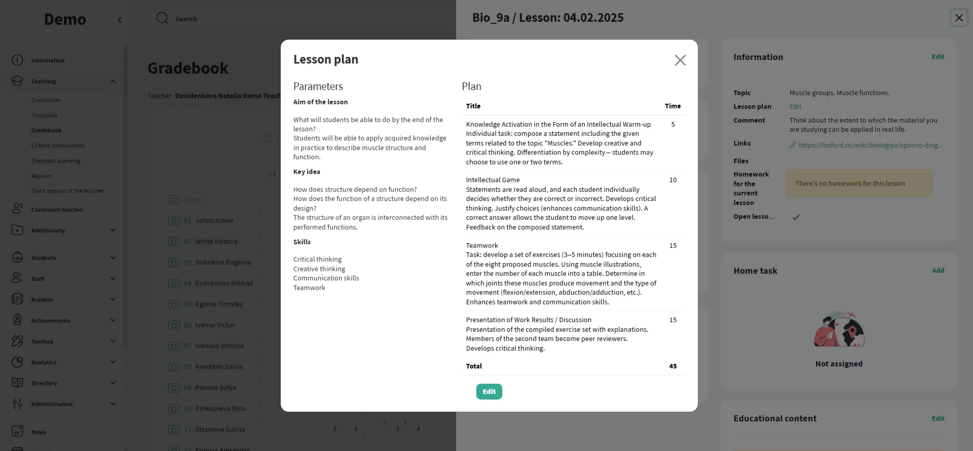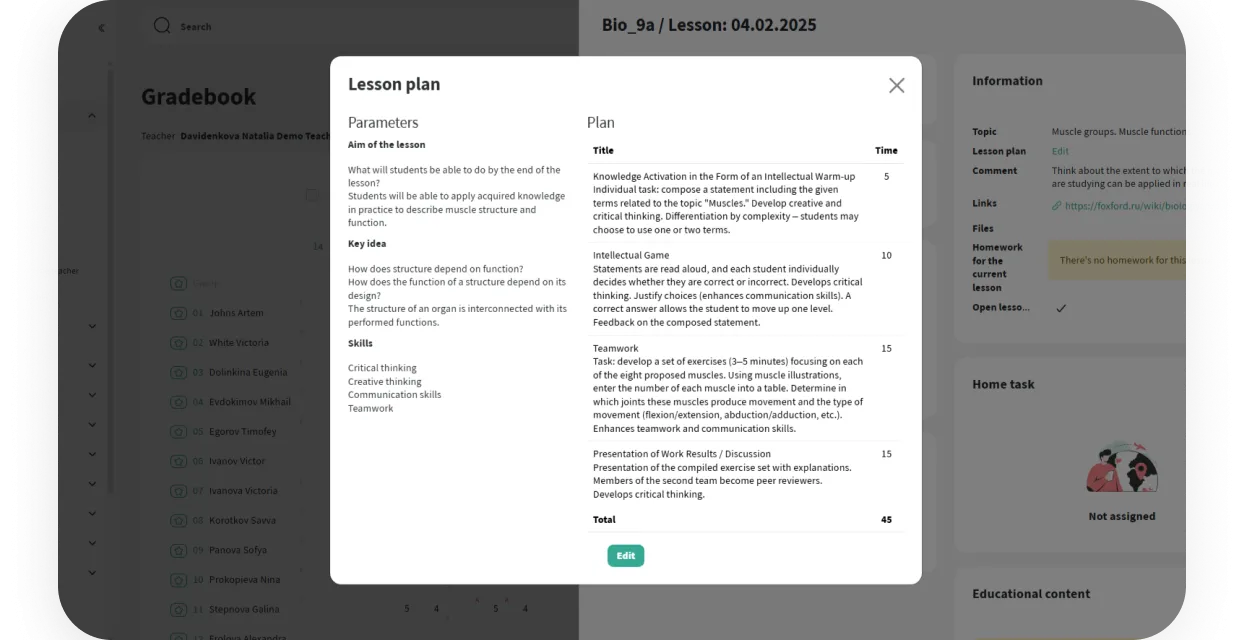 O professor prepara o plano de aula