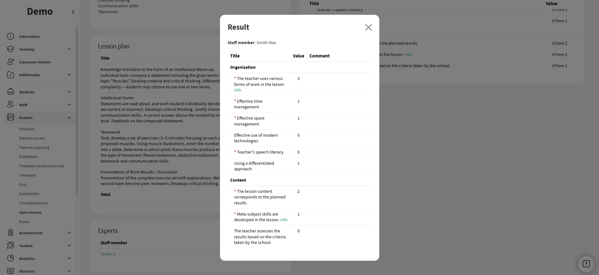 Os especialistas avaliam a aula de acordo com os critérios e deixam comentários