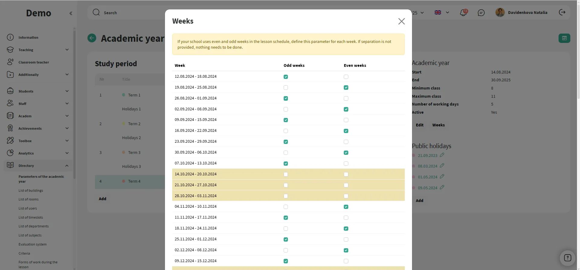 Se o ensino fundamental tiver um calendário especial, configure parâmetros separados sem afetar os demais.
