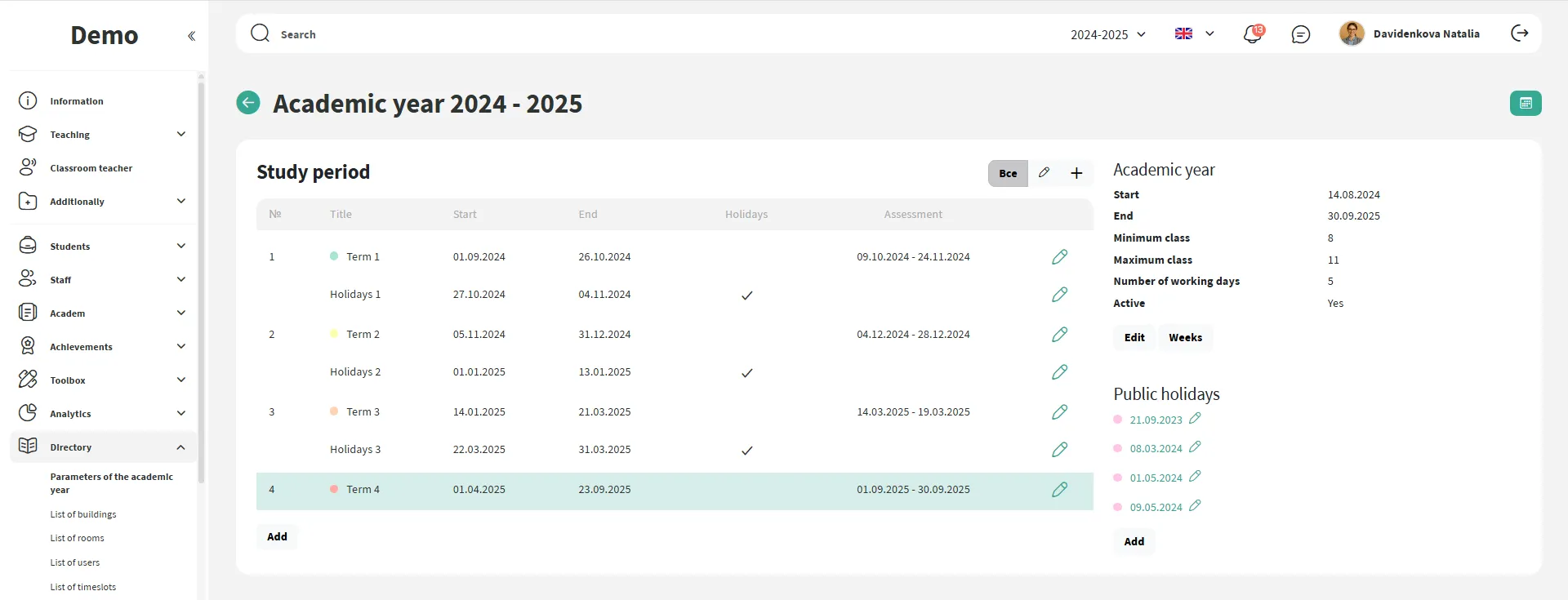 Estruture o ano considerando bimestres, semestres, feriados e recessos. Isso serve como base para todos os processos da escola.