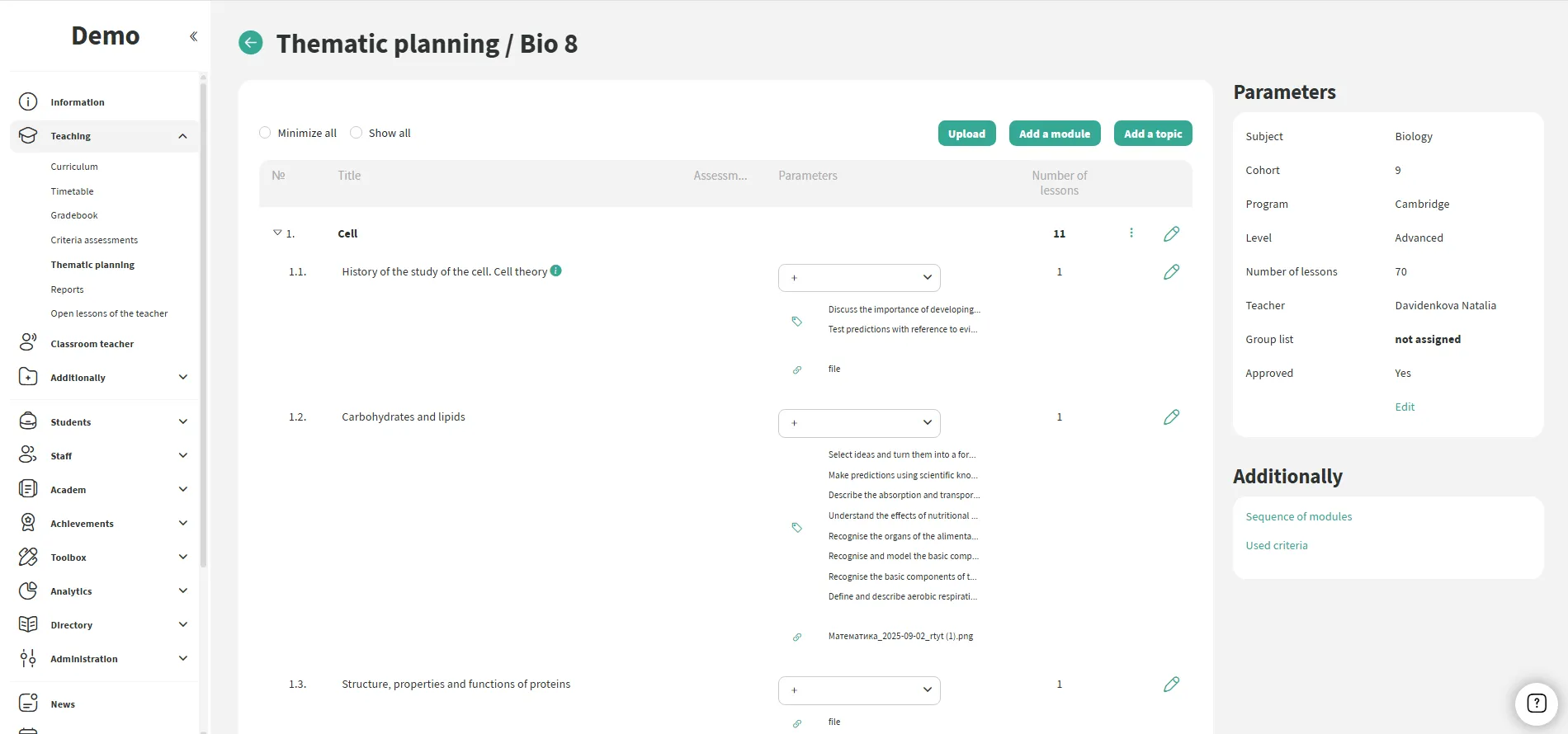 Construtor de currículo e plano temático