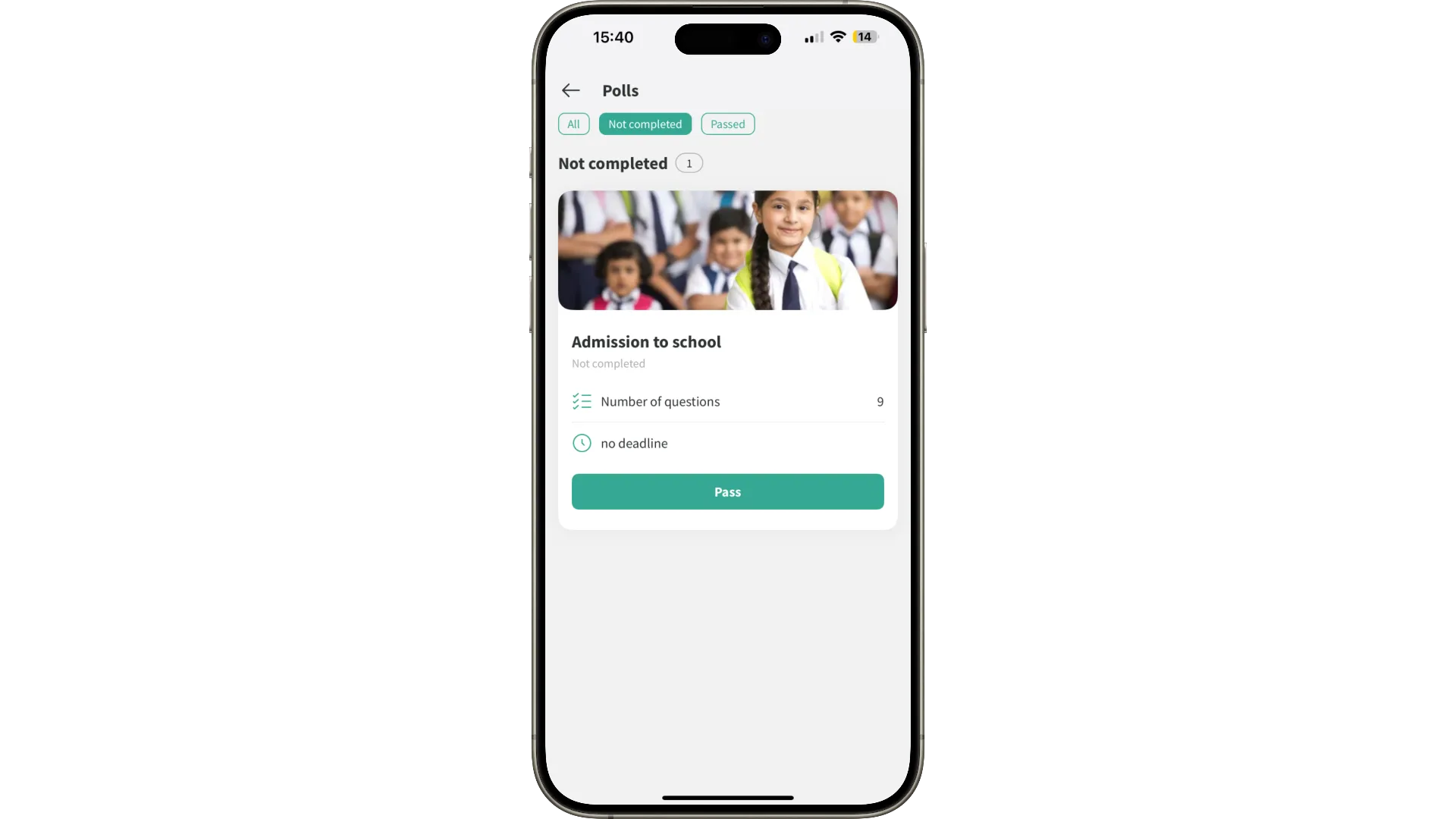 Os participantes podem responder às pesquisas em qualquer momento conveniente e salvar suas respostas.