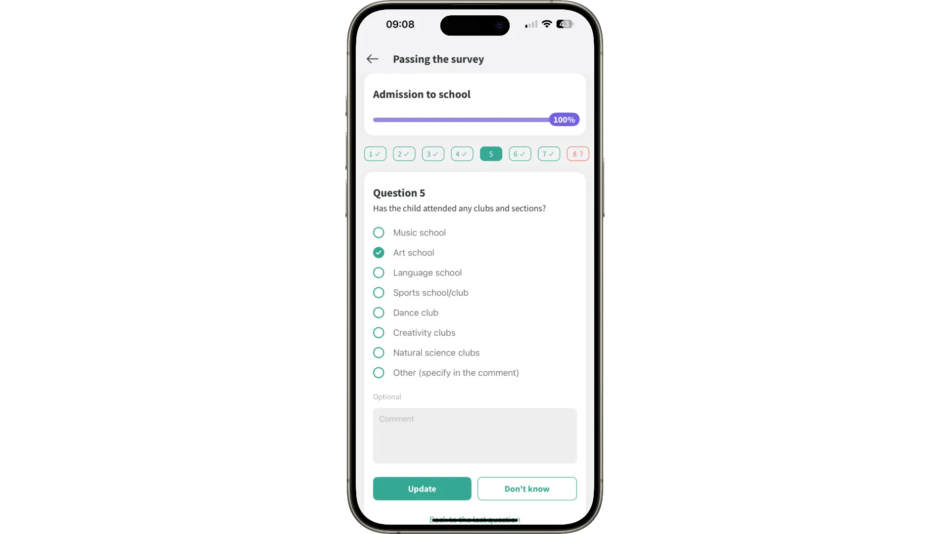 O aplicativo permite participar de pesquisas lançadas pela administração da escola — desde coleta de opiniões até avaliações de satisfação.