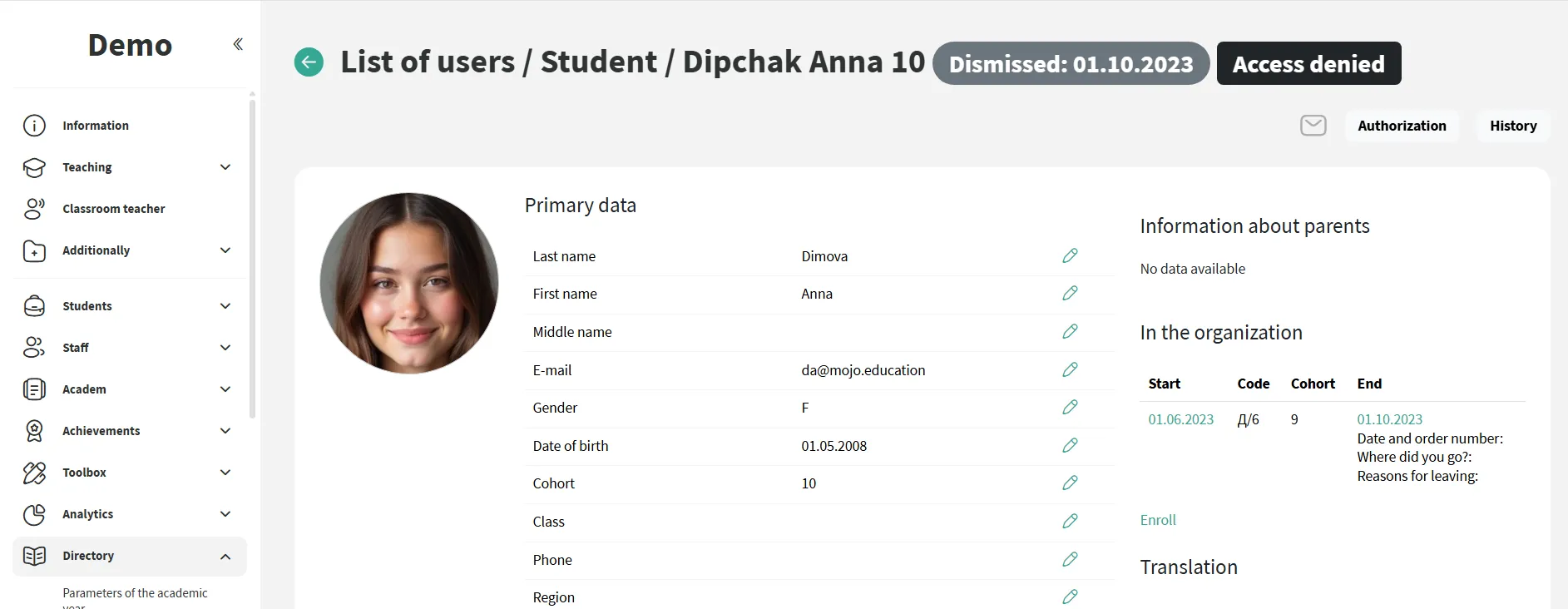 Ferramentas práticas para expulsão, demissão e rematrícula. Ao restaurar o usuário, o histórico de atividades, conexões e direitos de acesso são mantidos.