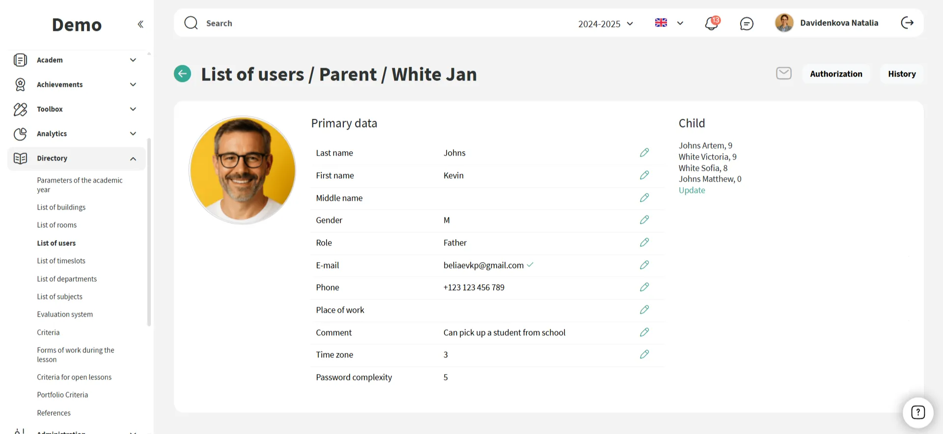 Um ou mais pais podem ser vinculados à conta do aluno. Um único pai pode visualizar as informações de vários filhos. Essas informações ficam disponíveis para professores e mentores, apoiando a família em todas as etapas da educação.